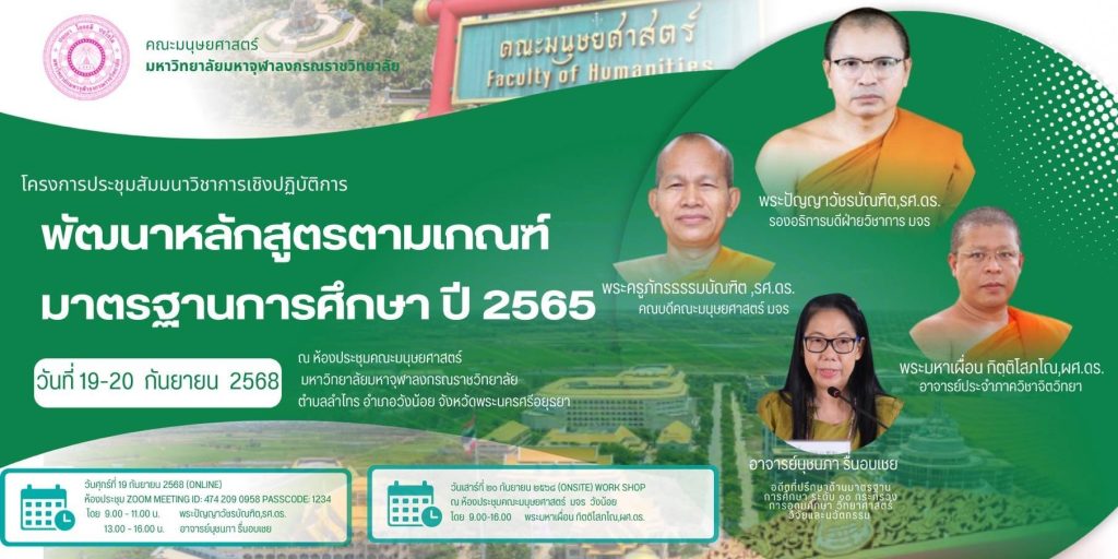 ข่าวกิจกรรม คณะมนุษยศาสตร์ มจร #จัดสัมมนาพัฒนาหลักสูตรตามมาตรฐานการศึกษา ปี 2565 Read More » Thatchathon Attarung 20/09/2025