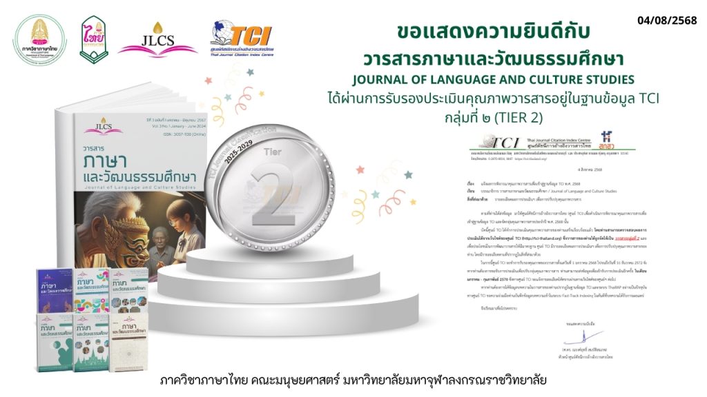 ข่าวสาร ขอแสดงความยินดีกับวารสารภาษาและวัฒนธรรมศึกษา Journal of Language and Culture Studies ได้ผ่านการรับรองประเมินคุณภาพวารสารอยู่ในฐานข้อมูล TCI กลุ่มที่ ๒ (TIER 2) Read More » Sunan Kalapat 04/08/2025