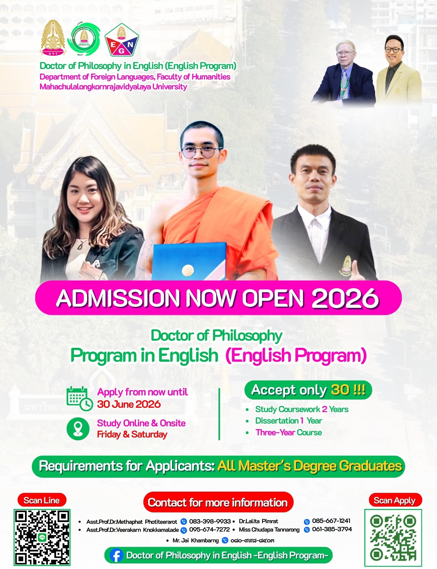 รับสมัคร : ปริญญาเอก ภาษาอังกฤษ 2026 – 1