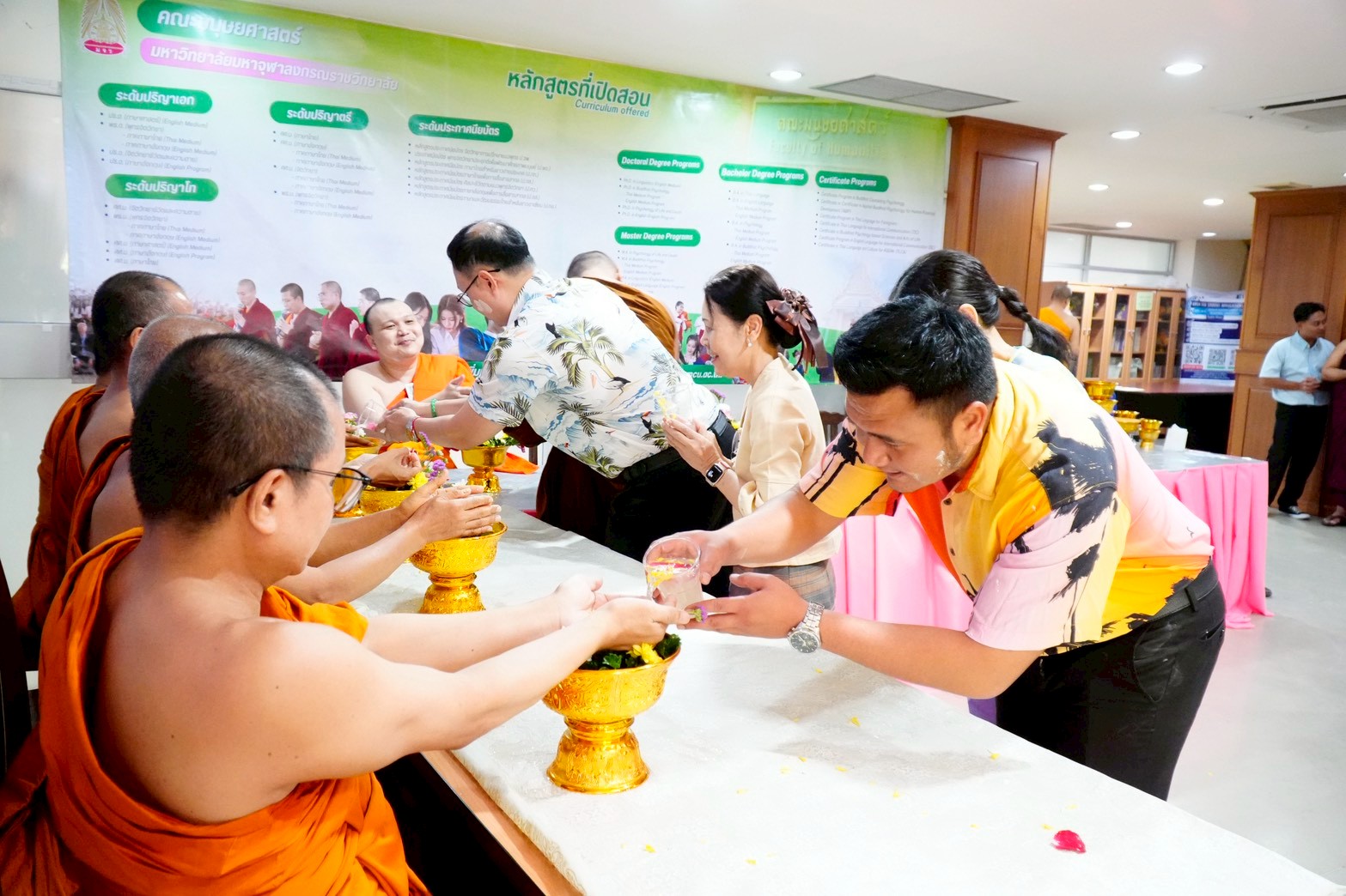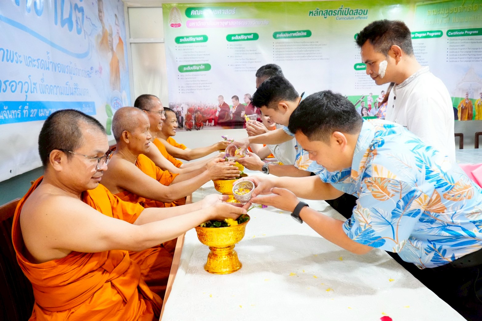 คณะมนุษยศาสตร์ มหาวิทยาลัยมหาจุฬาลงกรณราชวิทยาลัย จัดกิจกรรม “พิธีสรงน้ำพระและรดน้ำขอพรผู้บริหารและบุคลากรผู้อาวุโส” เพื่อสืบสานวัฒนธรรมประเพณีไทยและเสริมความเป็นสิริมงคล เนื่องในเทศกาลสงกรานต์