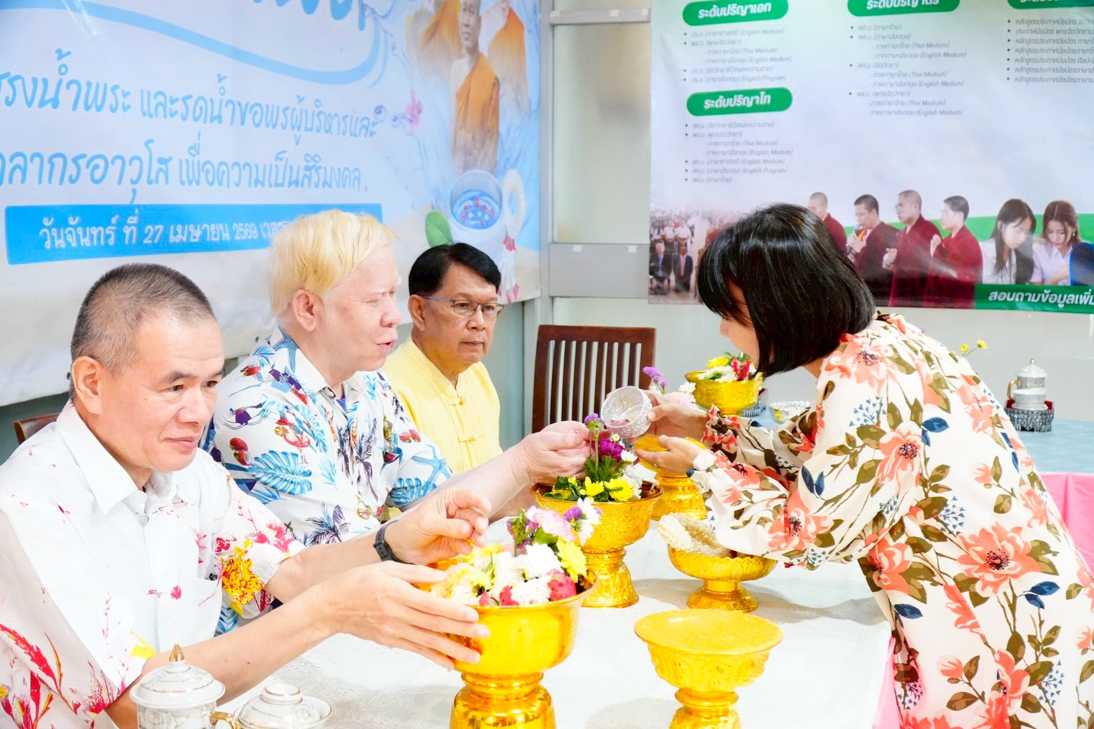 กิจกรรมประกอบด้วย พิธีบูชาพระรัตนตรัย การให้โอวาทและพรเนื่องในเทศกาลสงกรานต์ พิธีสรงน้ำพระ และพิธีรดน้ำขอพรผู้บริหารและบุคลากรผู้อาวุโส ท่ามกลางบรรยากาศที่อบอุ่นและเปี่ยมด้วยความเคารพตามขนบธรรมเนียมไทย